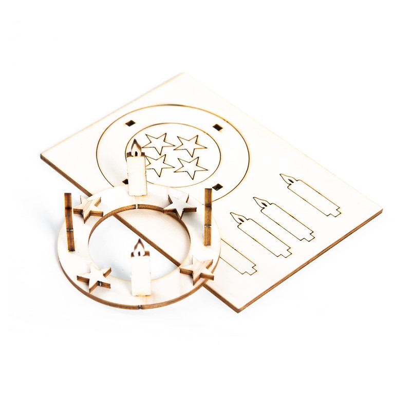 - The folding cards are 10.5 x 14.8 cm (DIN A6 format). The small decorative Advent wreaths come from our own production in Germany. The individual parts can be easily removed from the wooden board.