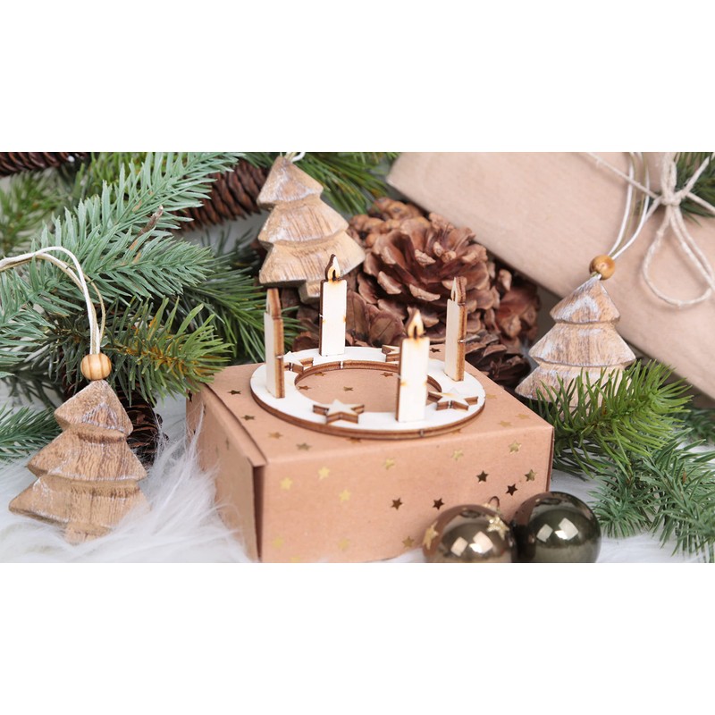 Logbuch-Verlag 3 Christmas Cards with Envelope + Mini Wooden Advent Wreath for Sticking - Greeting Cards Gift Christmas