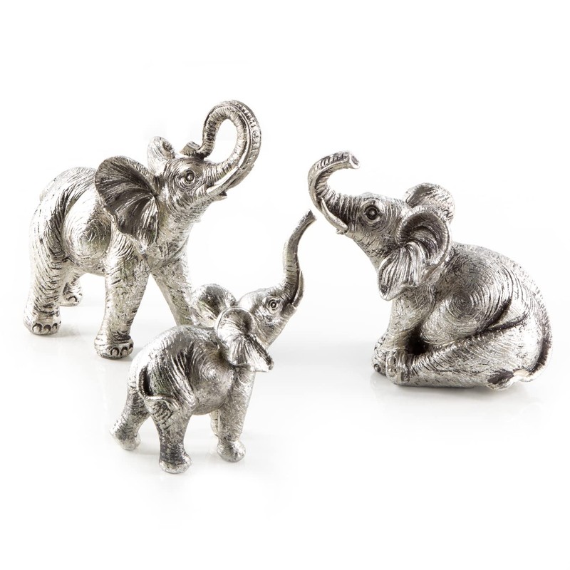 - Beautiful little elephant family in the colour silver. The set consists of a larger standing elephant, a sitting elephant and a baby elephant.