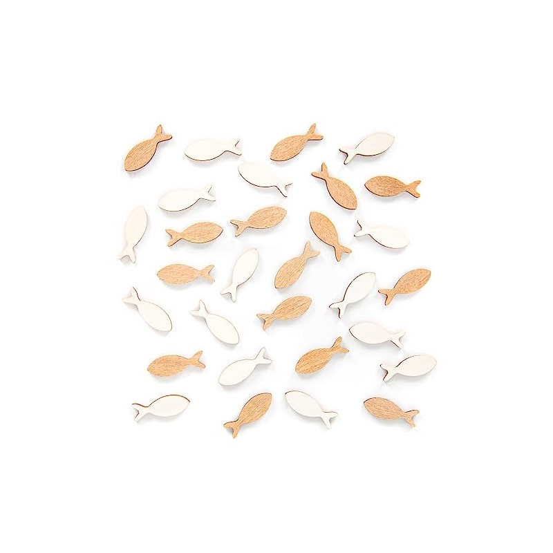 - These high-quality small fish are perfect as a table decoration and confetti for christening and communion, confirmation or confirmation. The mini wooden fish can also be used as a craft accessory and as a decoration for gifts or for your decorative fishing net.