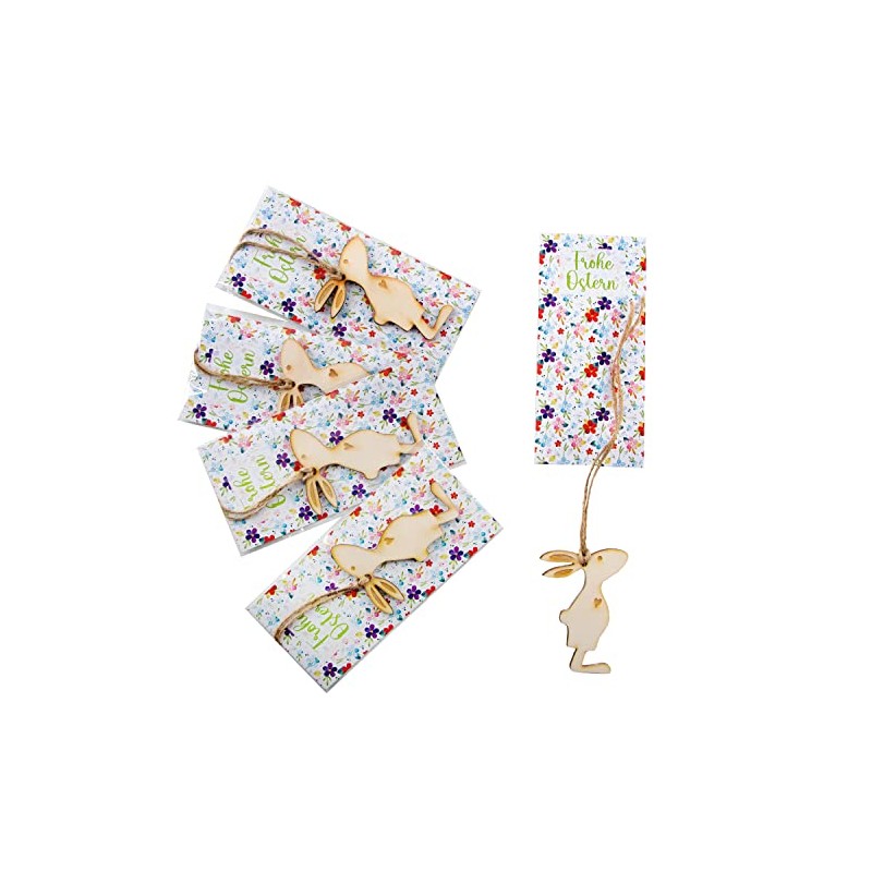Logbuch-Verlag 5 Small Easter Gifts for Children, Colleagues, Employees, Customers, Give-Away Easter Bunny Pendant with Card