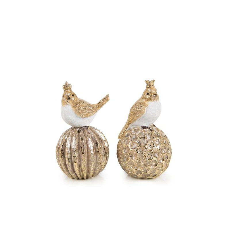 - Two beautiful birds with a golden crown sitting on a bauble as a Christmas decoration figure to stand. As a small gift, they will certainly delight many hearts on Christmas.