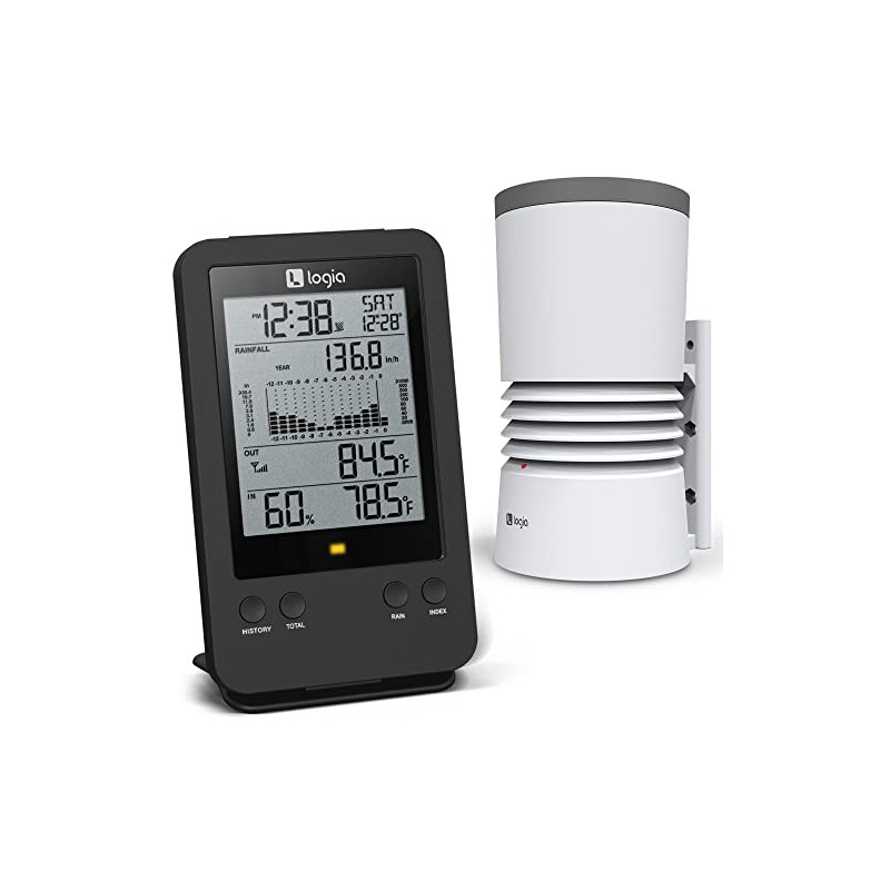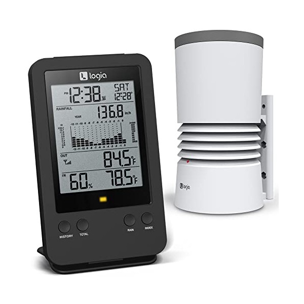 Logia 3-in-1 Rain Gauge Weather Station with Temperature & Humidity, Indoor/Outdoor Weather Monitoring System, Wireless Display Console with History, Alarms and Alerts