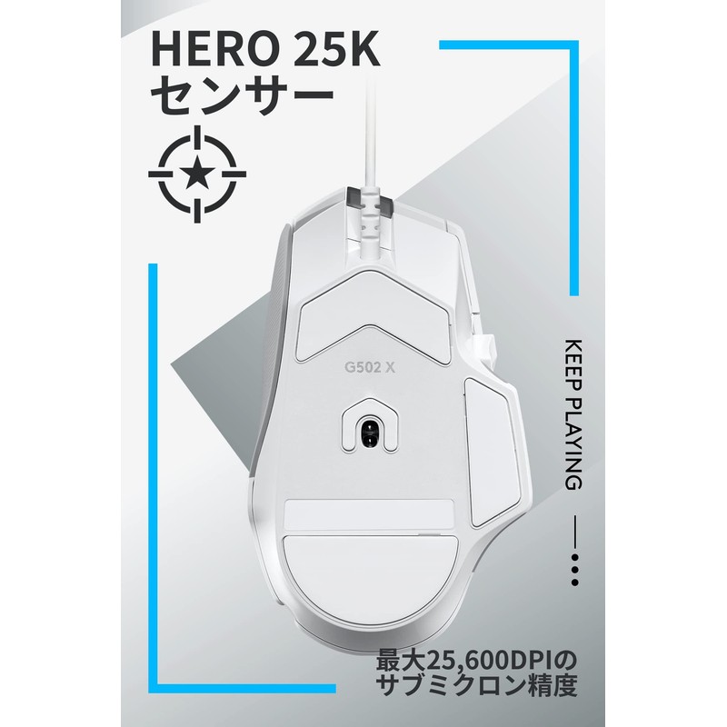 Logicool G G502 X Wired Gaming Mouse, Lightweight, 3.1 oz (89 g), Multi Buttons, 13 Program Buttons, HERO 25K Sensor, LIGHTFORCE Hybrid Switch, G502X-WH, White