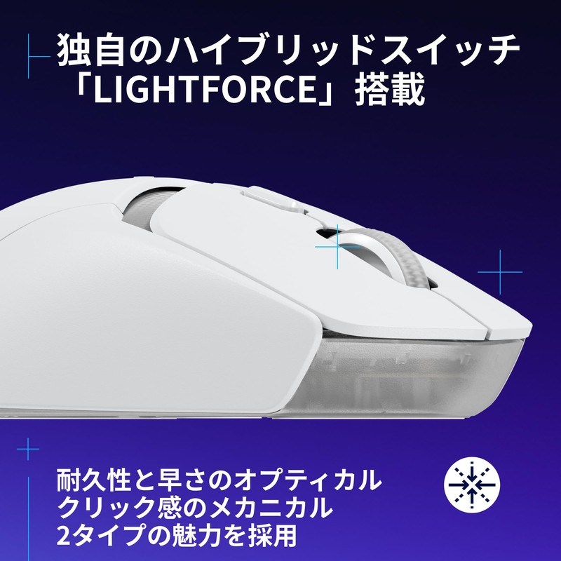 - Equipped with Logitech G's exclusive hybrid switch "LIGHTFORCE" / Mechanical switch with a click and optical switch for fast and accurate operation, hybrid switch that incorporates both the best of both worlds; High gaming performance and durability