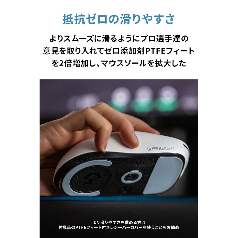 Logicool G Pro X SUPERLIGHT Gaming Mouse, Wireless, Lightest Than 2.2 oz (63 g), LightSPEED Wireless, HERO, 25K Sensor, POWERPLAY Wireless Charging, G-PPD-003WL-WH, White