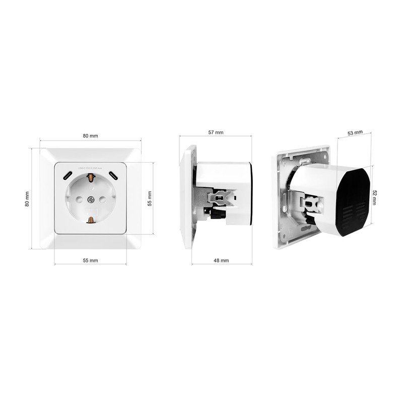 - Simultaneously charge 2 USB devices and use an ordinary socket - Input: 230V AC, 50Hz, 16A, 3600W max.