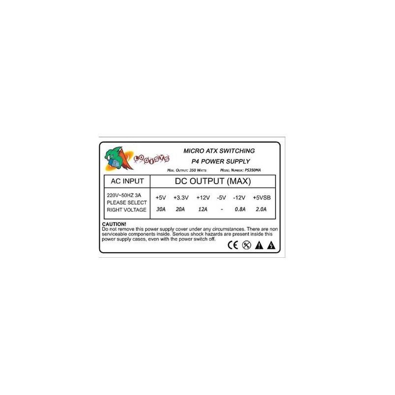Logisys PS350MA Micro ATX 350W Power Supply - - Retail - PS350MA