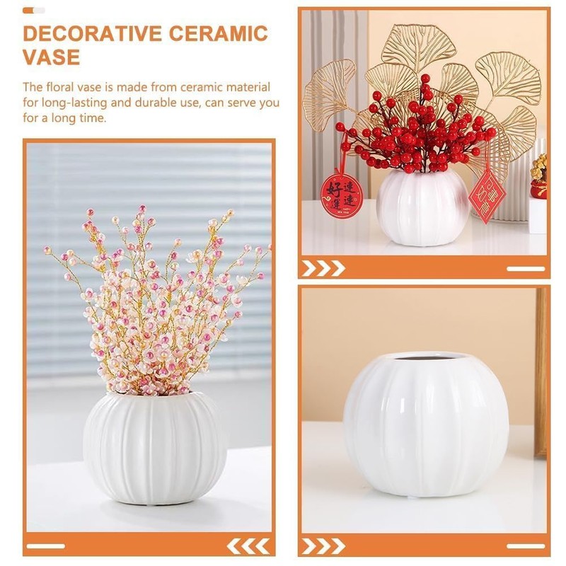 LOGOFUN Fall Pumpkin Planters Ceramic Pumpkin Vase Ceramic Flower Pot for Home Party Decor Flower Arrangements-White