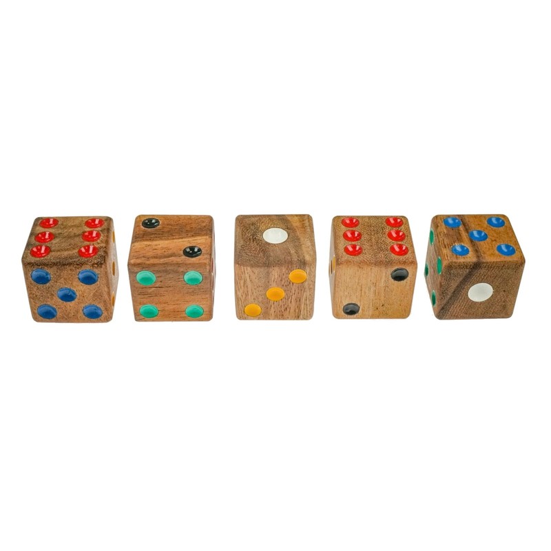 LOGOPLAY Set of 5 Wooden Dice 4 cm Edge Length with Coloured Dots