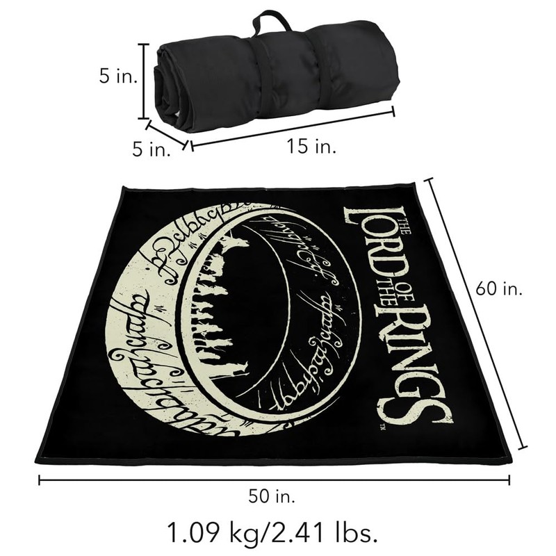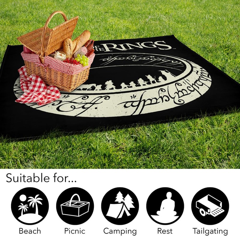 LOGOVISION The Lord of The Rings Picnic Outdoor Blanket, 50"x60" The Journey, Foldable Blanket for Picnic, Beach, Camping, Park, Tailgate