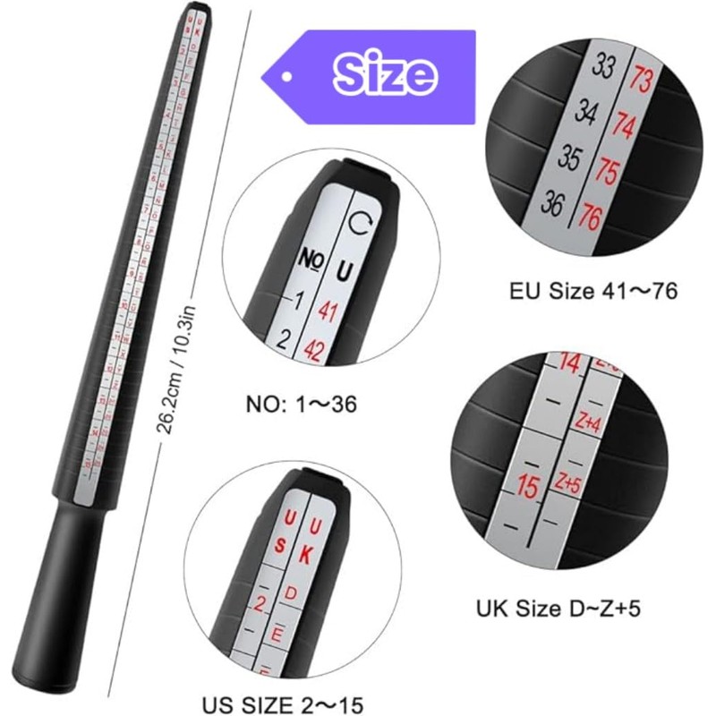 • Clear size marking: you will receive 1 ring size ruler, 27 ring size ruler and 2 ring size bands, complete ring sizes, UK sizes from A to Z, US sizes 1-15 are available, and European sizes are from 41 to 76. (for men or women).