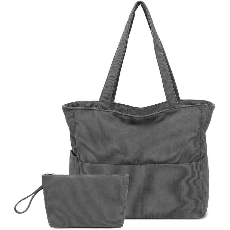 LOIDOU Large Beach Bag Women's Shoulder Bag with Zip Tote Bag Waterproof Sandproof Shopper Shoulder Bags Handbag Gym Swimming Pool with Wet Compartment Travel Pool Swim, Cord grey, hobo