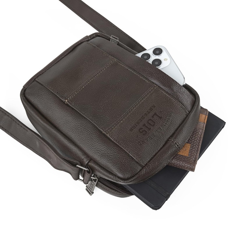 Lois - Men's Leather Shoulder Bag - Shoulder Bag Men's Leather with Adjustable Strap - Shoulder Bag Men's Small Made from High-Quality Materials, brown, Unit size