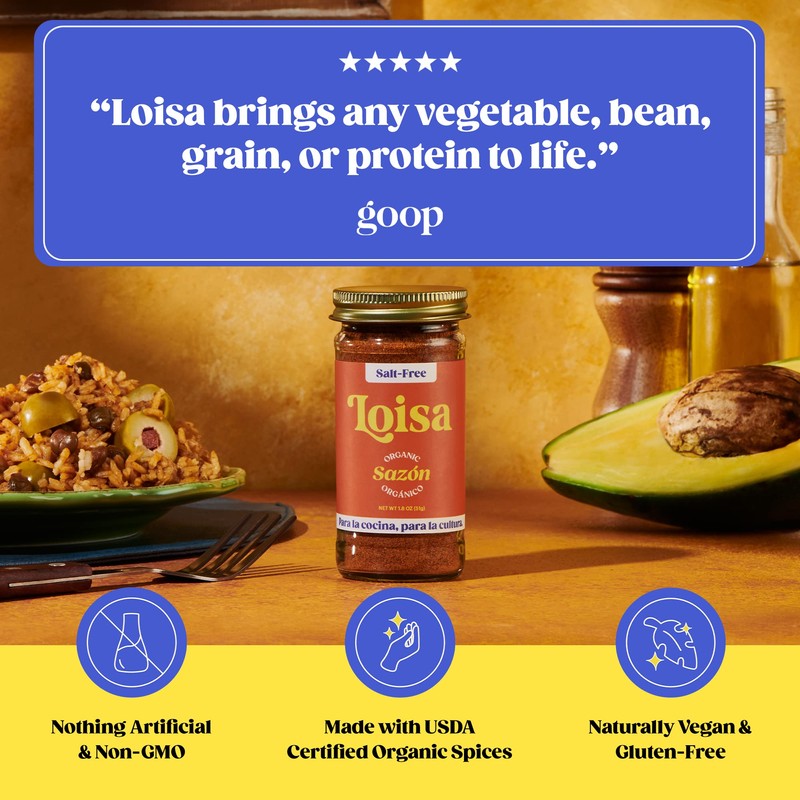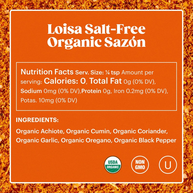 Loisa SALT-FREE Sazón Seasoning, USDA Organic, Non-GMO, No-MSG, No Preservatives, No Artificial Coloring, No Artificial Flavors, Pure Latin Flavor, 1.8 oz, Pack of 1