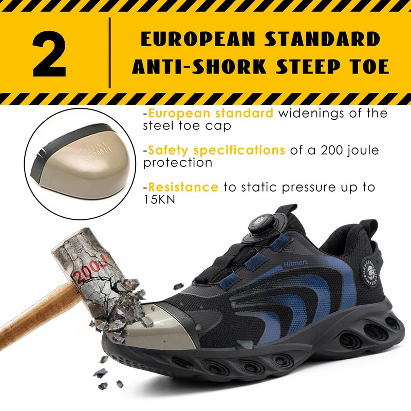 - Impact-resistant: our safety trainer has widened steel caps according to European standards for particularly high impact resistance. It not only protects your toes better, but also provides plenty of space inside your toes, ensuring more comfort for your feet.