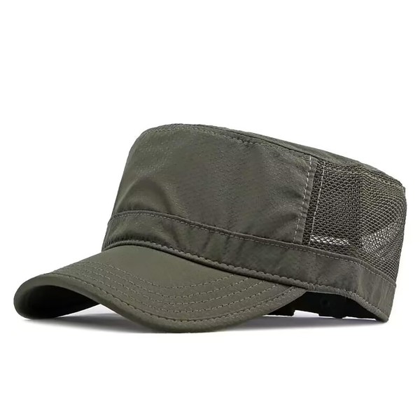LOJAX Men's Work Cap, Mesh Summer Cool Hat, Military Hat, Light and Flirty Quick Drying, Solid Color, Military, armygre