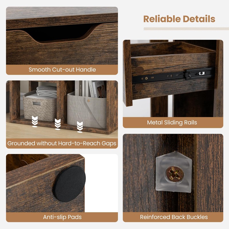 • Reliable Details: For your convenience, the drawer of this bookcase is equipped with a cut-out handle and smooth metal slides for easy accessibility. The bookcase itself is directly grounded, preventing the dust from accumulating in the gaps.