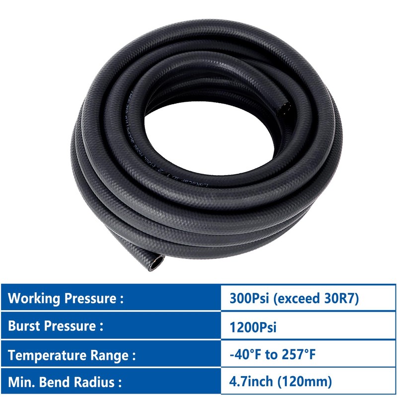 LokoCar Rubber Fuel Hose Line Push Lock 1/2" ID SAE 30R7 NBR 25ft 300PSI Black
