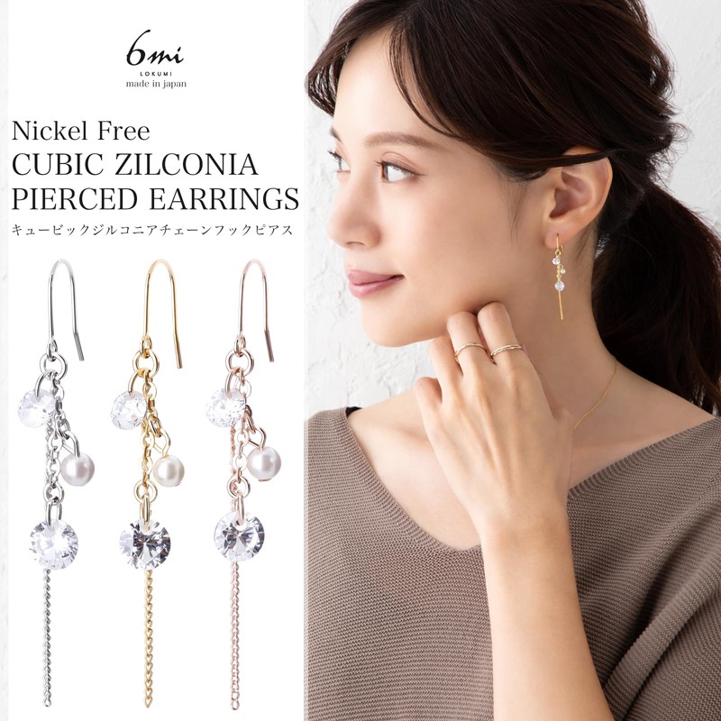 LOKUMI cu-7 Earrings, Hypoallergenic, Made in Japan, Cubic Zirconia, Pearl, Chain, Hook, Hook, Earrings, Simple, Long, Swaying, Popular, Office Gift, Present Nickel Free, Brass Cubic Zirconia Created