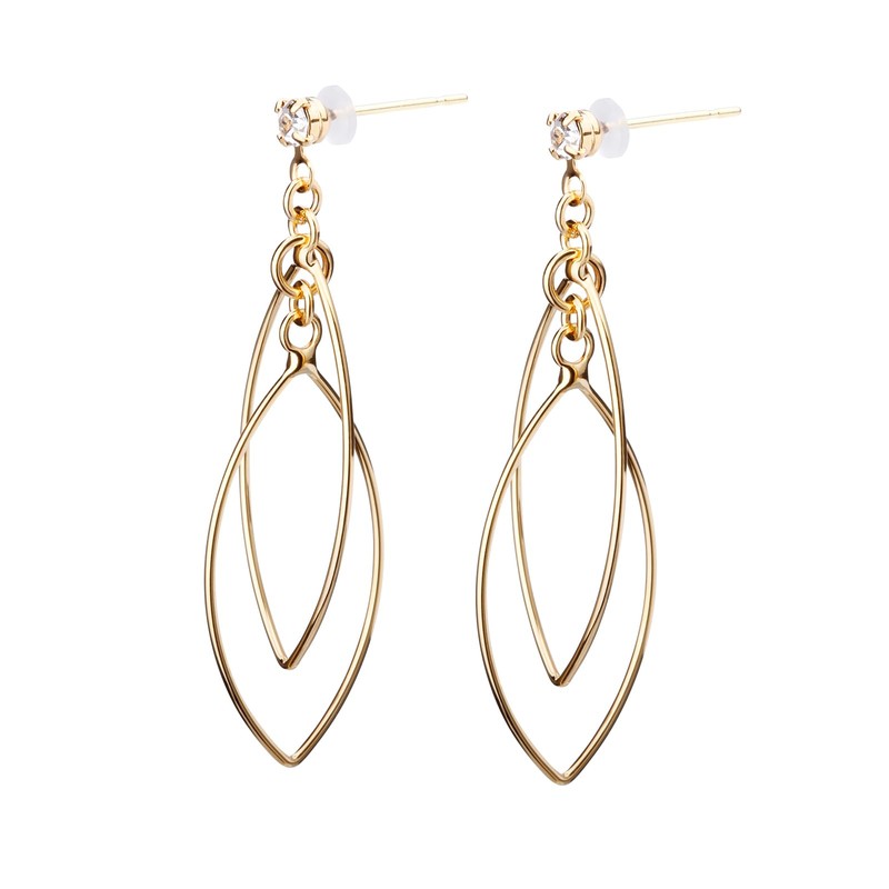 LOKUMI jk-72 Earrings, Made in Japan, 18K Gold, K18 Posts, K18 Metal, Hypoallergenic, Marquise Swing Earrings, Long, Women's, Simple, Studs, Swing, Leaf, Popular, Nickel-free, Gift, Present, Brass