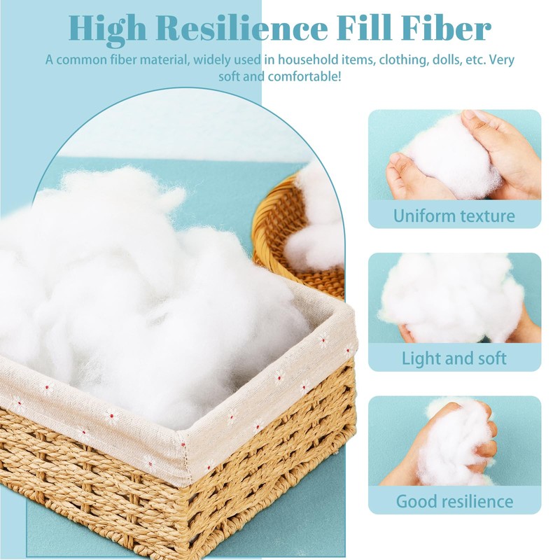 - Premium Fiber Fill: Stuffed animal filling. Made from good quality materials, filler for stuffed animals, fine and dense fiber, polyester fill can still maintain its integrity after multiple washings, and it is not easy to deform even if it is machine washed, white polyester fiber can be used for a long time