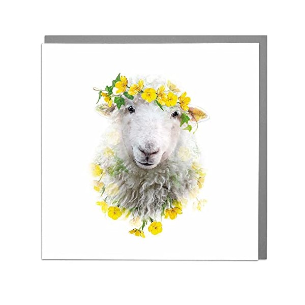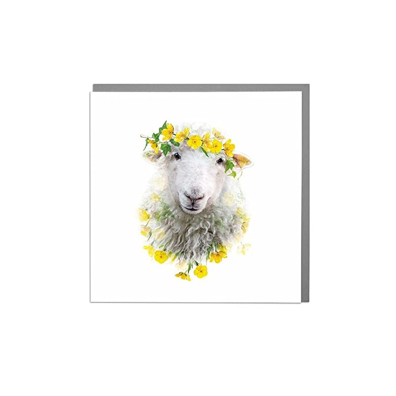 Lola Design - Wildlife Botanical Greeting Cards, Floral Sheep Design - Suitable for Birthdays, Congratulations or Any Special Occasions - Blank Inside with Grey Envelope - 150mm x 150mm