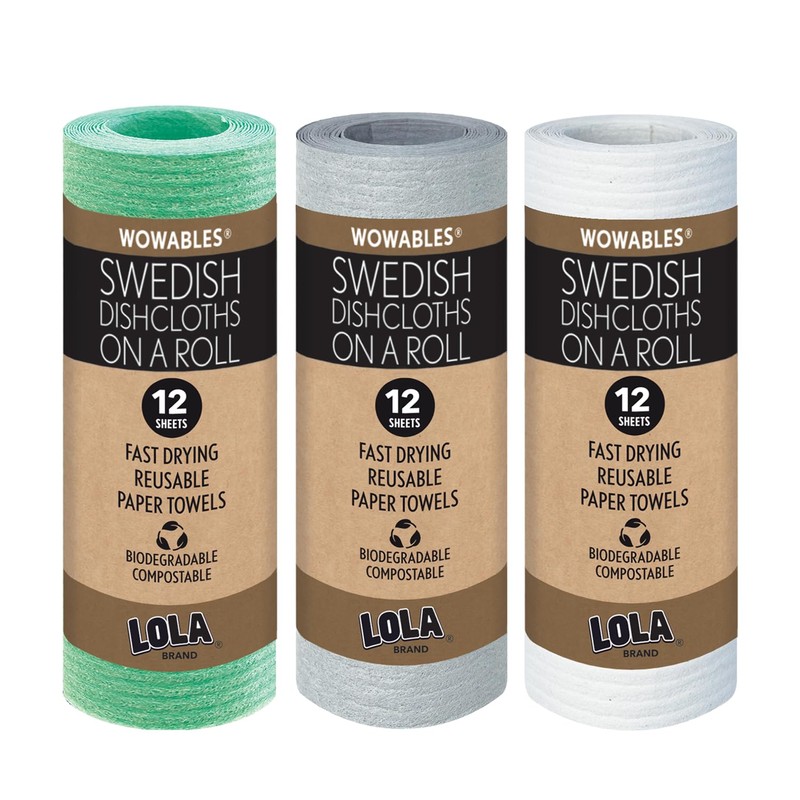LOLA Swedish Dishcloths on a Roll, Absorbent Eco Friendly Cellulose Sponge Dish Cloths, Reusable Paper Towels, 11" x 10" Made in Germany, 3 Rolls