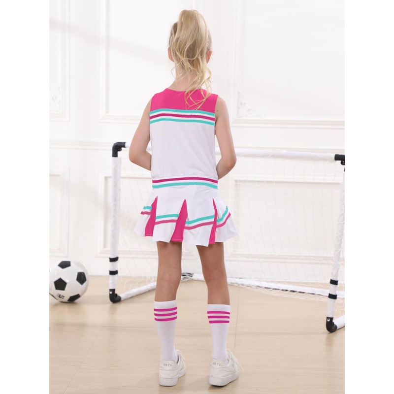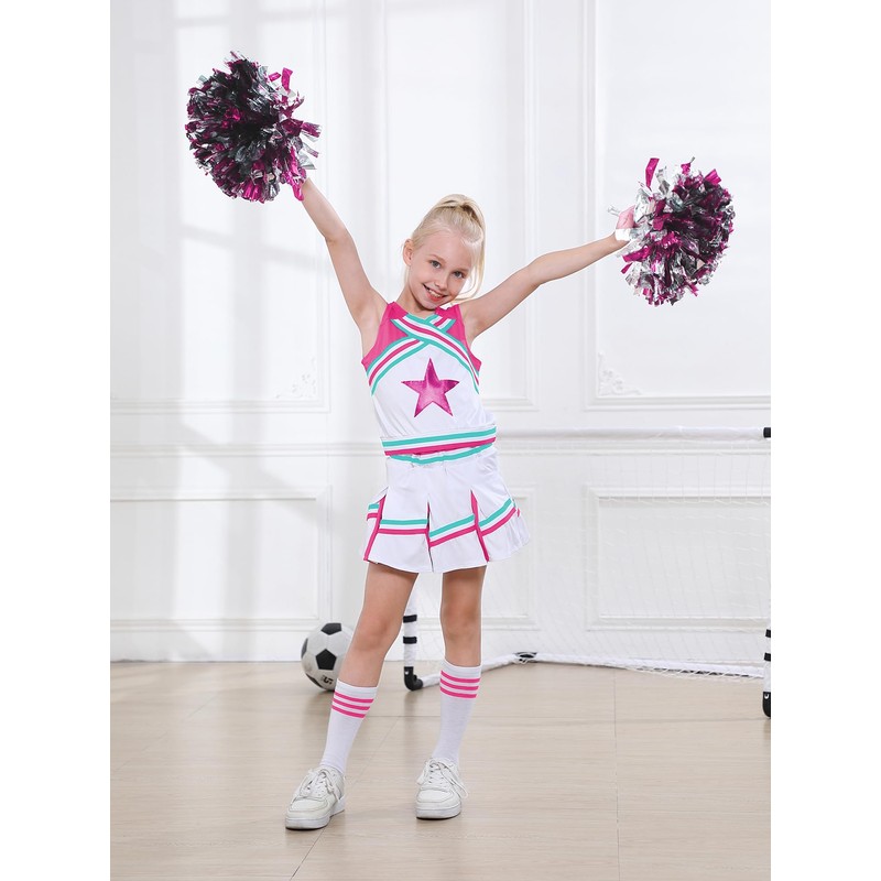 LOLANTA Girls' Cheerleading Costumes with Pompoms and Socks, Kids Halloween Fancy Dress Up, Cheerleader Outfit, pink, 5-6 Years, 120
