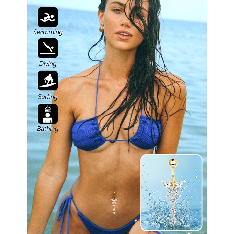 • 【Meticulously Designed】These gold belly button piercing jewelry blend elegance and glamour in each piece. Perfect for daily wear, beach vacations, bikini looks, or nights out on the town, these designs effortlessly complement your outfits, making you shine with confidence at every occasion,whether you prefer a subtle shimmer or bold dangling charm