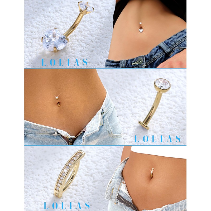 • 【Maintenance Tips】Every piece of gold plated surgical steel belly button rings undergoes rigorous inspection for quality before dispatch. After removing the dainty belly button ring, please place your small belly ring in a lined jewelry box or a sealed plastic bag.LOLIAS — Focus on Your Fashion Jewelry,Notice:1. Keep away from chemicals.2. Avoid wearing all night