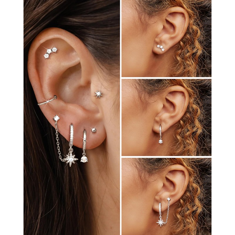- Versatile earring set: the earring set contains 6 different styles, each in the classic colours gold and silver, which are rich in styles, such as Sparkling cubic zirconia stud earrings, thin hoop earrings, chain earrings, earmuffs, climbing earrings, earrings and more, perfect for creating stylish looks or stacking for a unique personal touch.