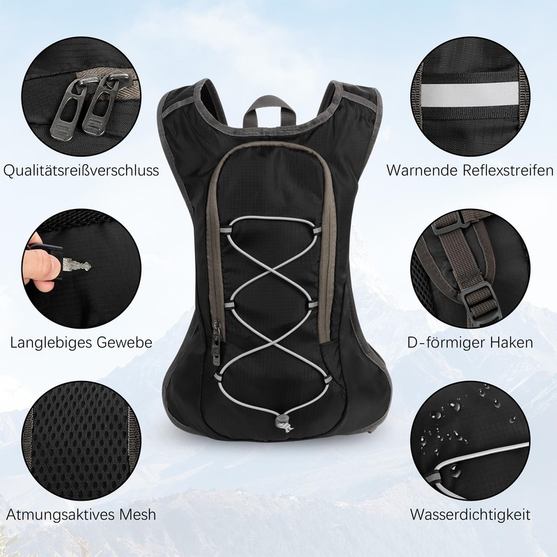 Lollanda Bicycle Backpack, Hiking Backpack, Small, Waterproof Backpacks for Men and Women, MTB Backpack for Cycling, Camping, Running, black