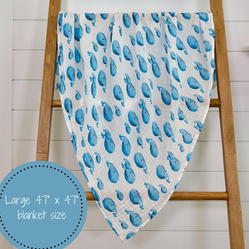 LollyBanks 100% Cotton Muslin Swaddle Nautical Ocean Blanket Set, Whale and Shark Pattern | Boy Receiving Blankets Pack of 3 Breathable Security Swaddles