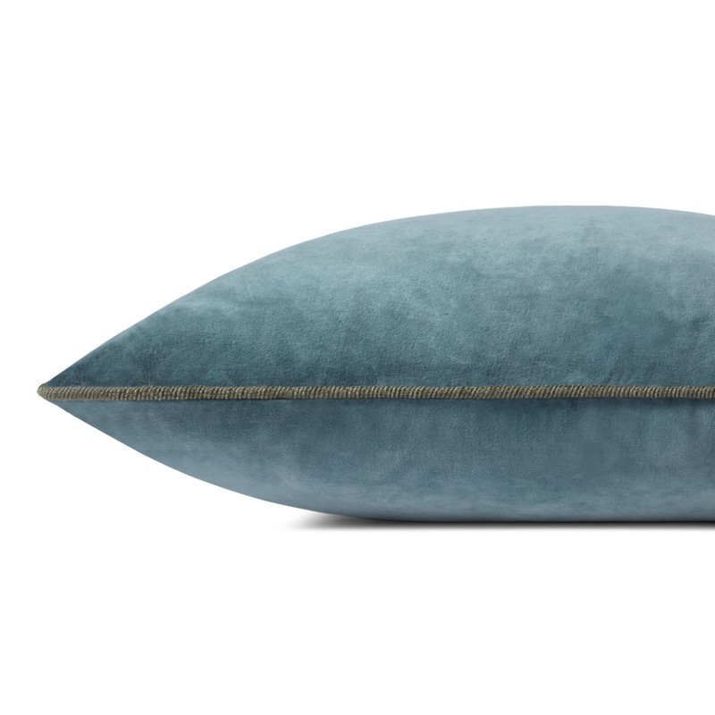 • Liza is a dusky blue velvet throw pillow from Chris Loves Julia x Loloi framed with piped edges.