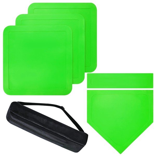Lolyer 5-Piece Baseball Bases for Yard - 3 Throw Down Bases 1 Homeplate 1 Pitching Rubber with Bases Bag for Practice, Rubber Bases for Kickball Baseball Softball Play, Green