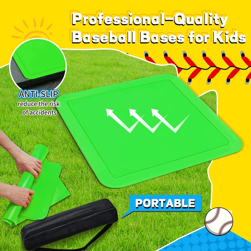 - Versatility: The portable design makes them easy to roll up and move to different locations, perfect for courtyard practice or outdoor events like kickball. Whether practicing, hosting a friendly competition, or enjoying outdoor fun, these bases elevate your backyard game experience