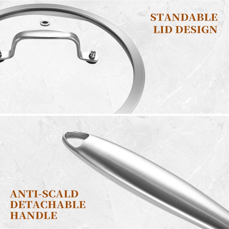 Lolykitch 6 QT Tri-Ply Stainless Steel Sauté Pan with Lid,Deep Frying Pan,Large Skillet