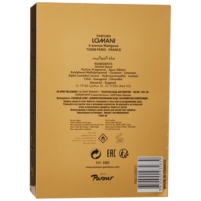 Lomani Ab Spirit Millionaire By Lomani for Men - 3.3 Oz Edp Spray, 3.3 Oz