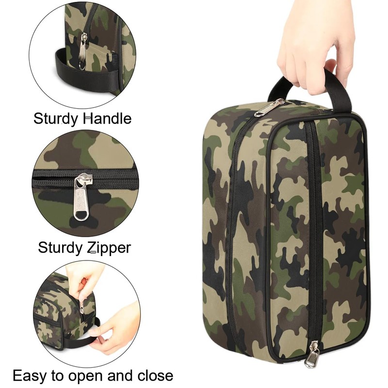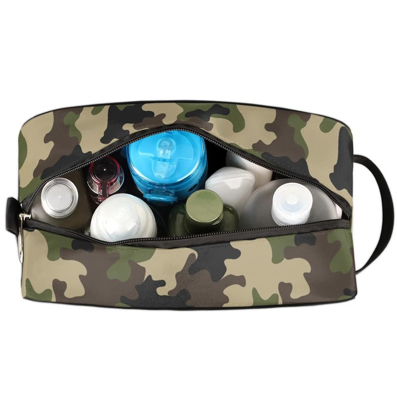 - 【MULTI-PURPOSE BAG】 Whether you're on a short trip or a business trip, this camo toiletry bag is sure to meet your needs. It is an extremely versatile bag that can be used not only as a toiletry bag, makeup bag, shower bag, shaving bag, storage bag, but also as a medicine bag to store healthcare supplies while traveling. Perfect for travel, vacation, beach, camping, picnic, swimming, gym, office or daily use.