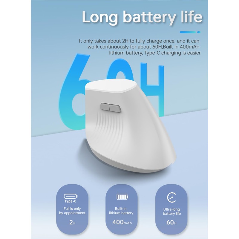 - [Smart Power Saving] Built-in 400mAh rechargeable lithium battery. When the mouse are idle for 10 minutes, they will automatically sleep to save power. Just click one of the buttons to wake it up. 2 hours of charging can last for 60 hours.