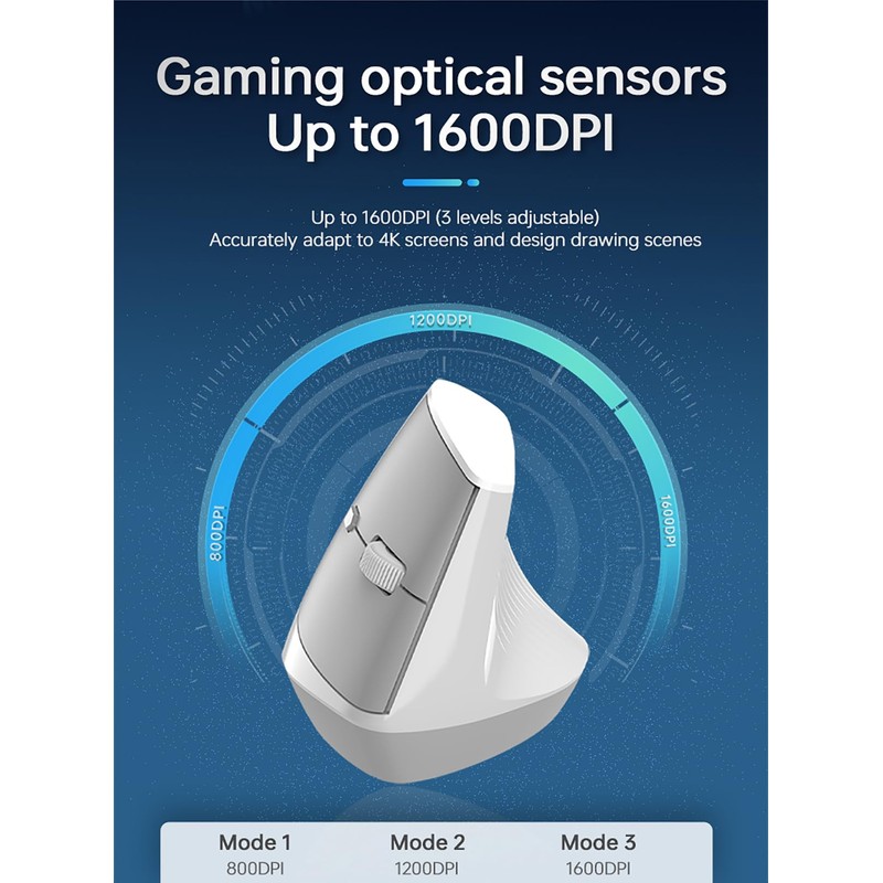 - [3-Level DPI] Press the DPI button to switch between 800/1200/1600 DPI. By changing the DPI, you can adjust the cursor movement speed, making the mouse more suitable for your usage.(Default 1200 DPI)