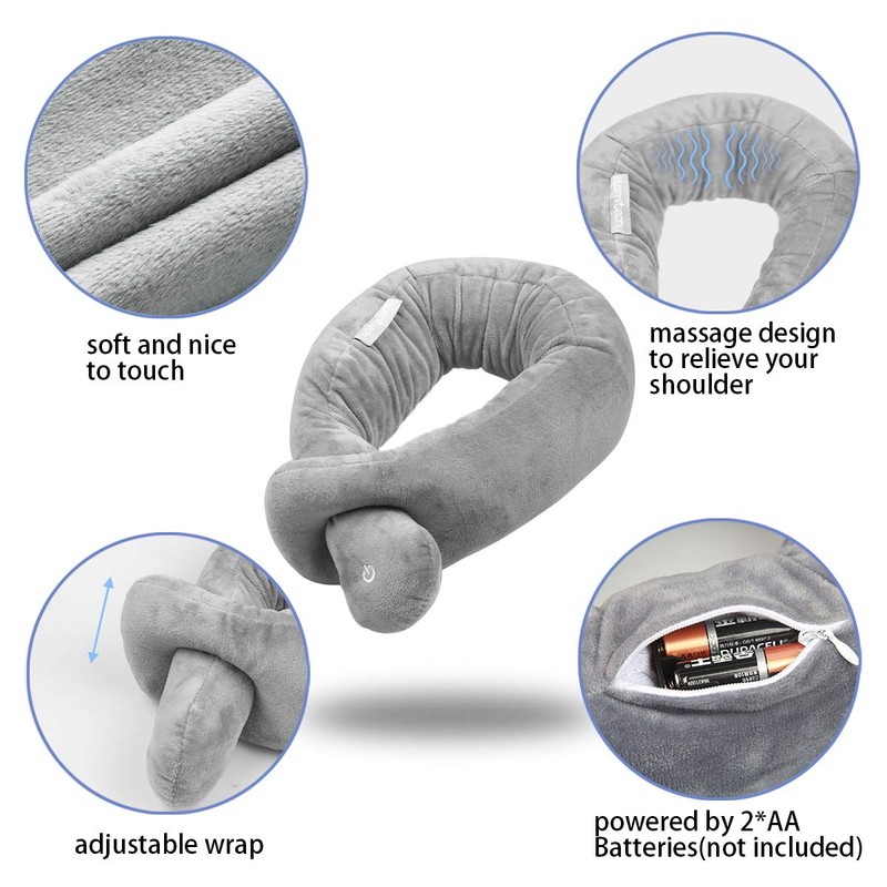 lomitech Neck Pillow, Neck Wrap Vibration Massaging Wireless Travel Pillow Soft Touch Breathable Head Support for Office Sofa Air Plane Grey