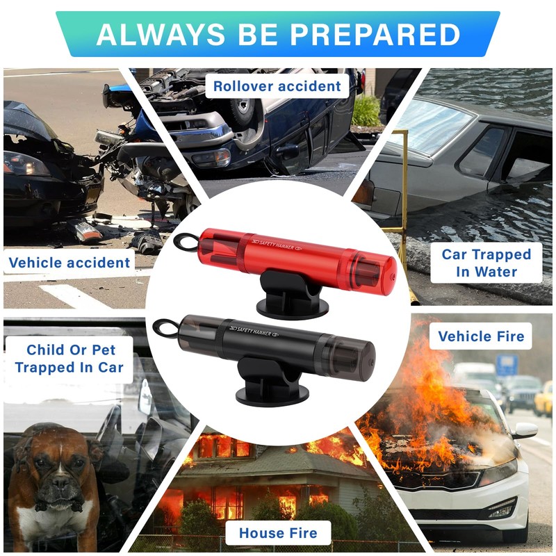 - Compact and lightweight: the seat belt cutter emergency hammer is small, lightweight and portable. Equipped with two adhesive bases, it can be easily and safely attached anywhere within reach in the car. The car safety hammer is small in size but strong in effect. Practical tool for car escape.