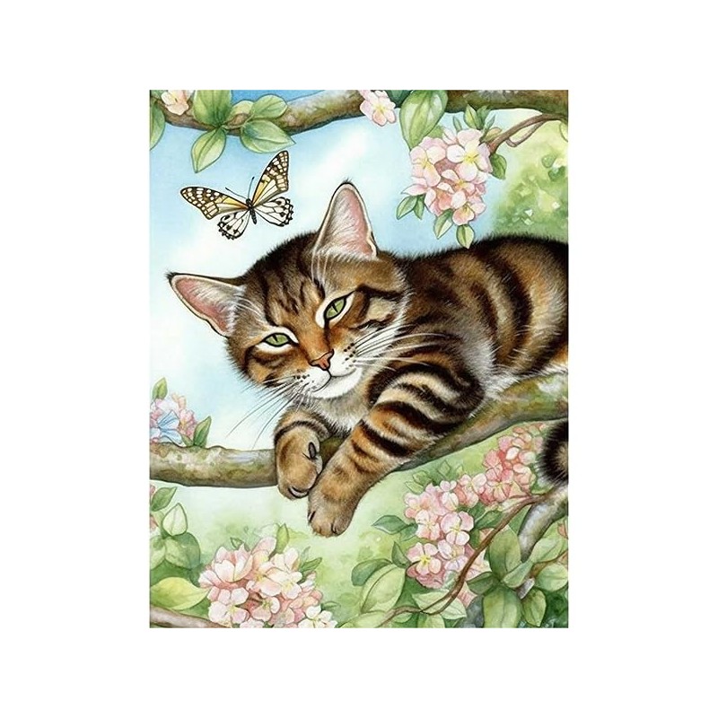 LOMSIOY DIY 5D Diamond Art Kits for Adults, Cat Diamond Painting Kits for Beginner, Animal Diamond Art with Round Full Drill Rhinestone Crafts Gem Arts for Home Wall Decor 12 * 16 inch