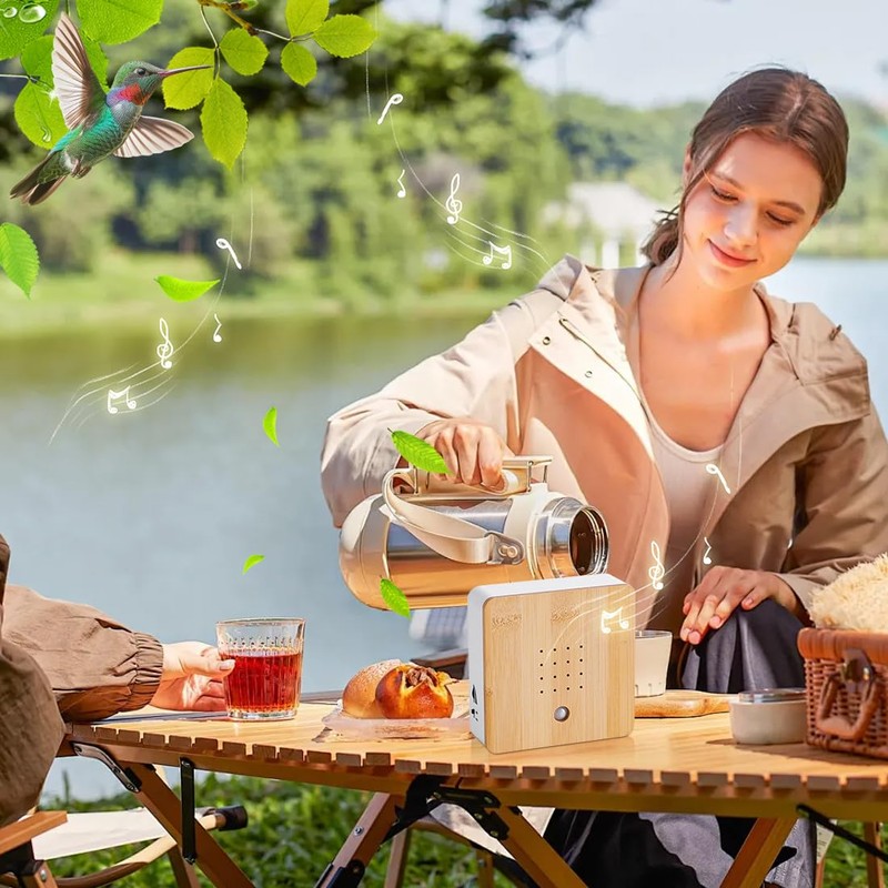 - THE HEALING SOUNDS FROM NATURE The bird singing box brings soothing natural sounds to your rooms. Enjoy the soothing sounds of simulated chirping birds, ideal for daily relaxation in the bedroom, living room, bathroom or hallway. Perfect for calming your mind and creating a relaxed atmosphere wherever you are