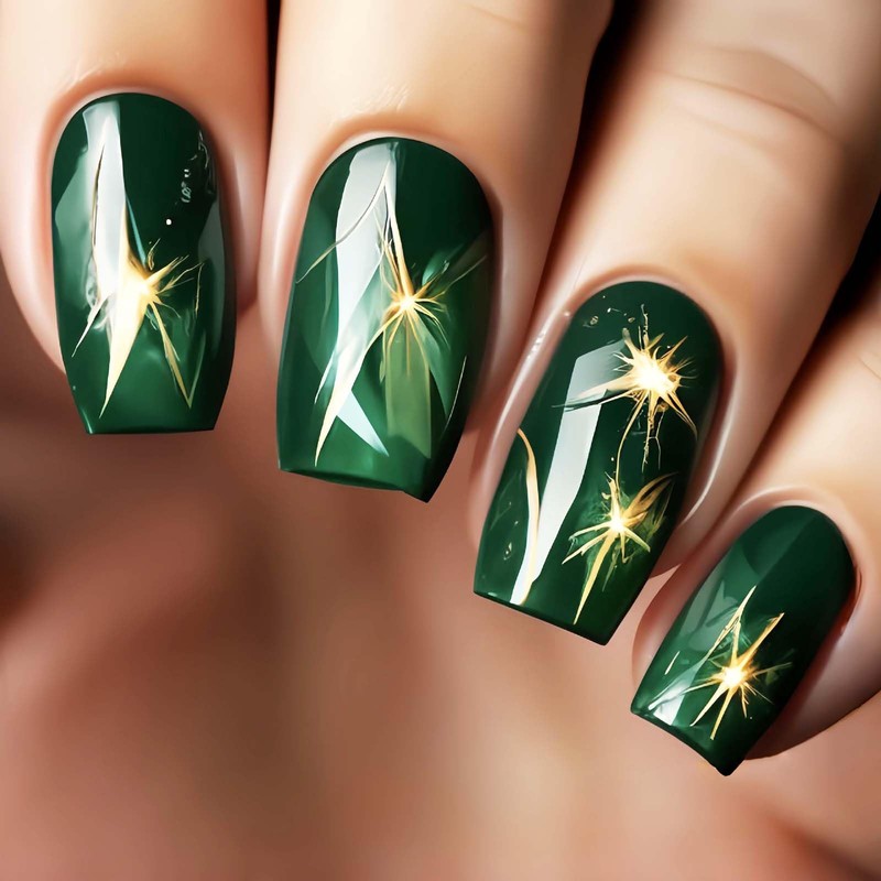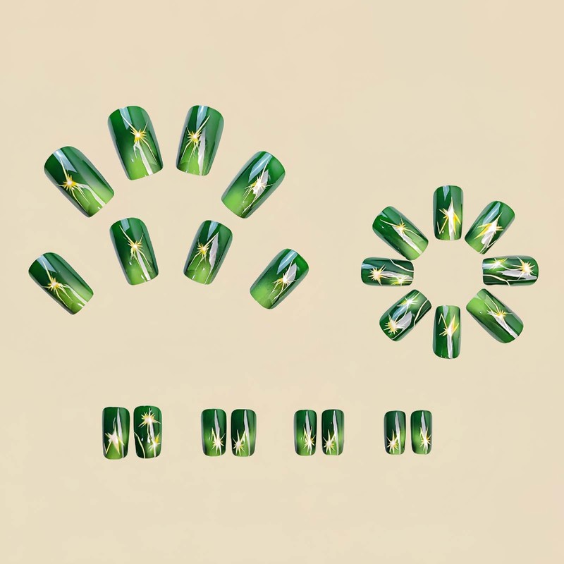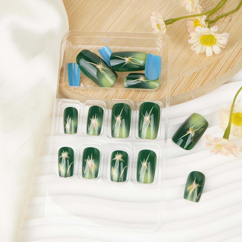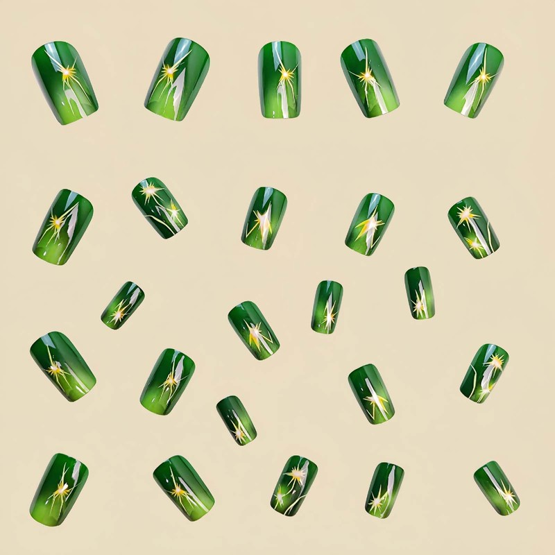 Lomxene Press On Nails for Woman Short Fake Nails Green Ombre Nails Press Ons Gold Acrylic Nails Glue On Nails Artificial Nails False Nails Stick On Nails Square 24pcs(square green nails)
