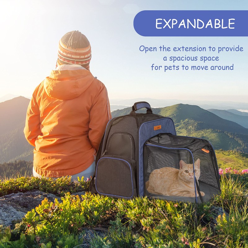 LONABR Expandable Cat Carrier Collapsible Pet Backpack w/Breathable Mesh for Traveling Hiking Camping Hold Pets Up to 22 Lbs