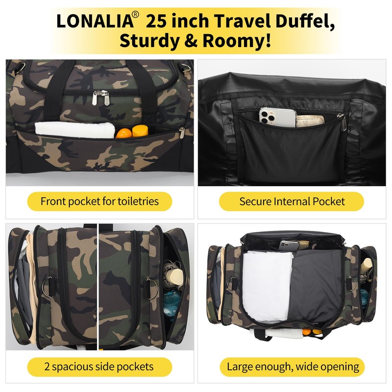 LONALIA 25 in Large Travel Duffel Bag for Men - 56L Roomy Weekender Bag with Trolley Sleeve (Camo)