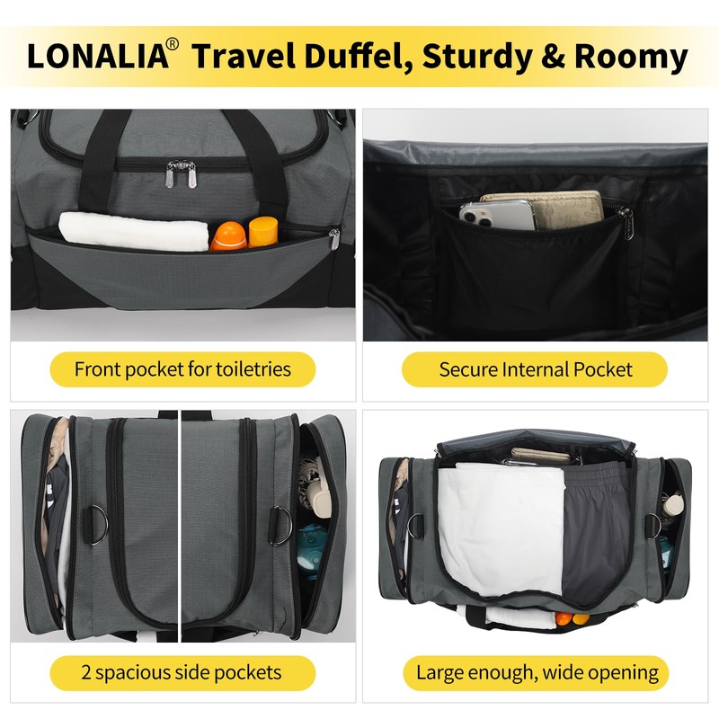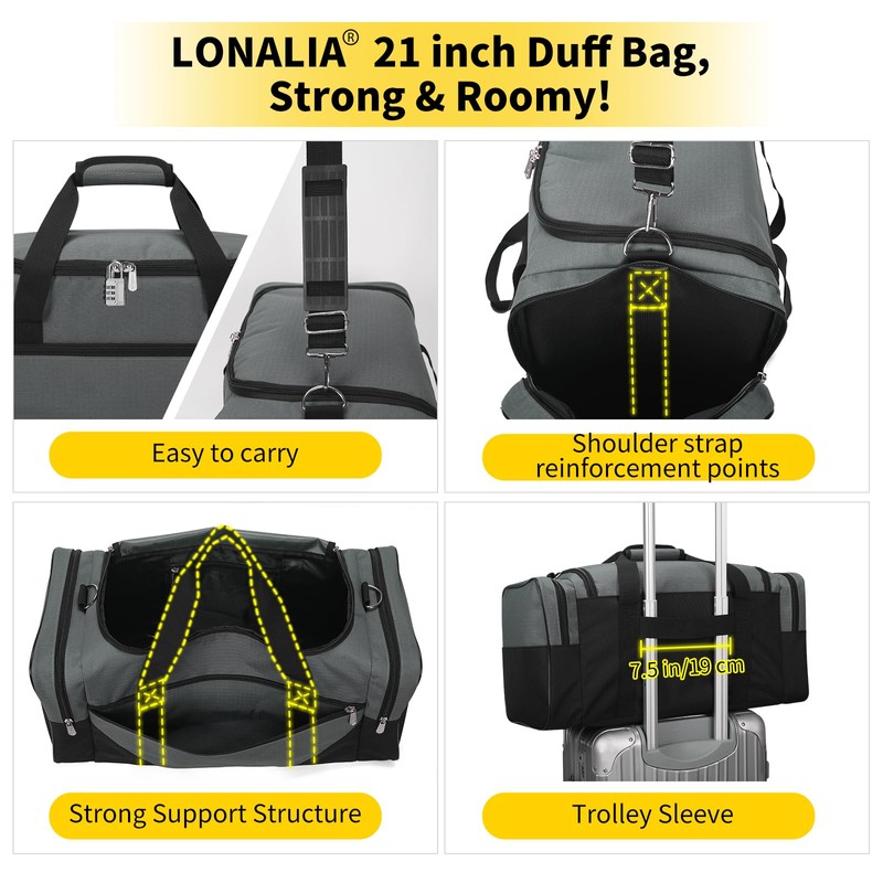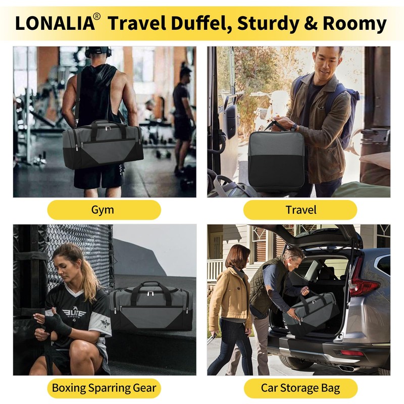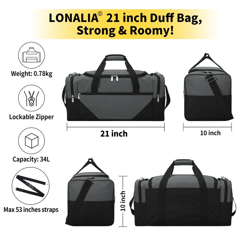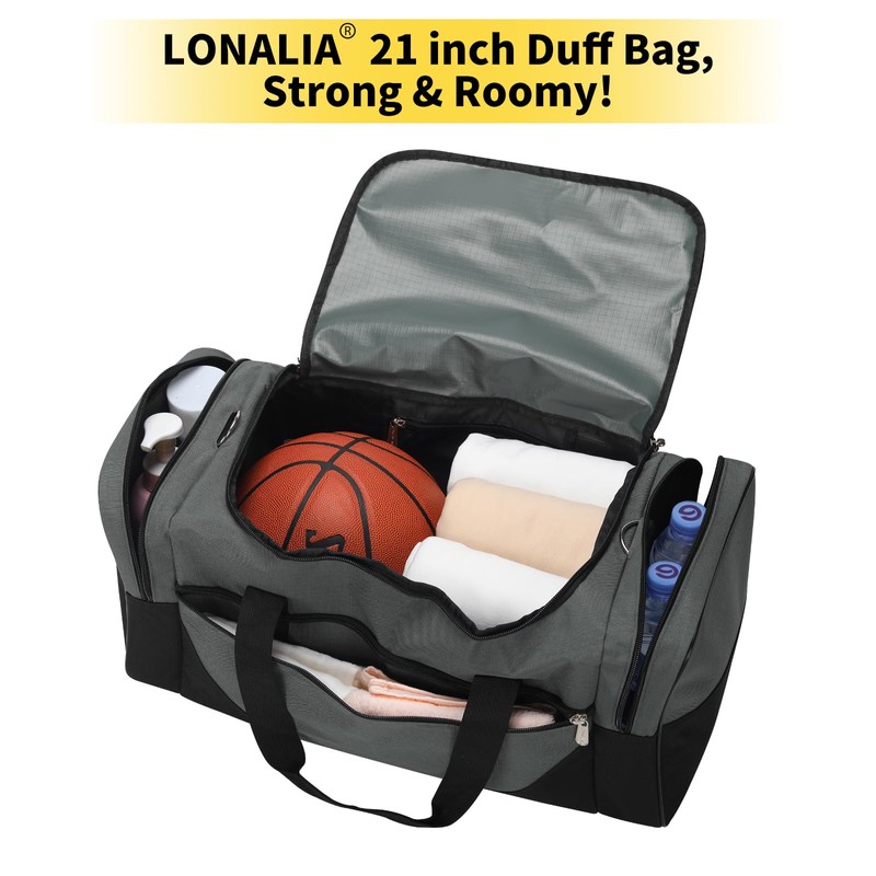LONALIA Gym Bag Sport Duffle Bag for Men - 21 in Weekender Travel Bag with Trolley Sleeve (Gray)